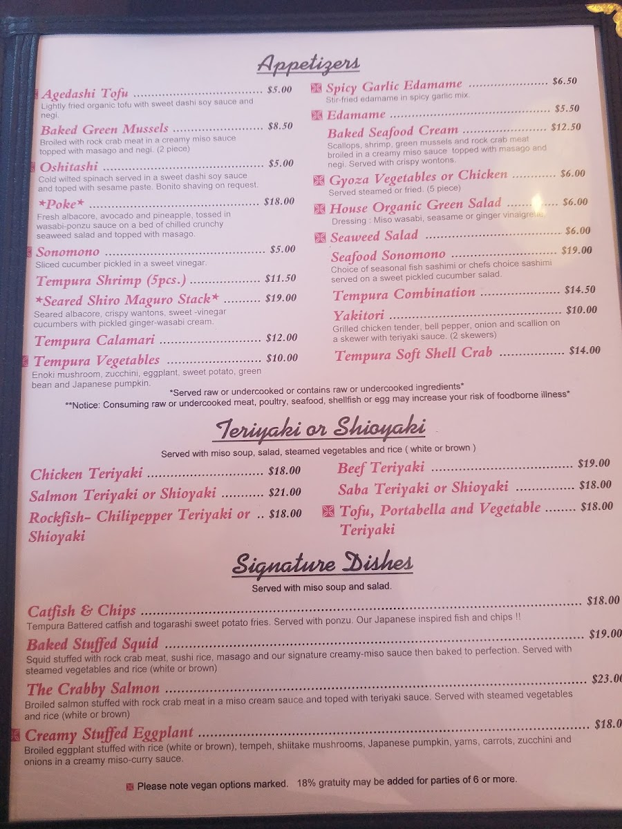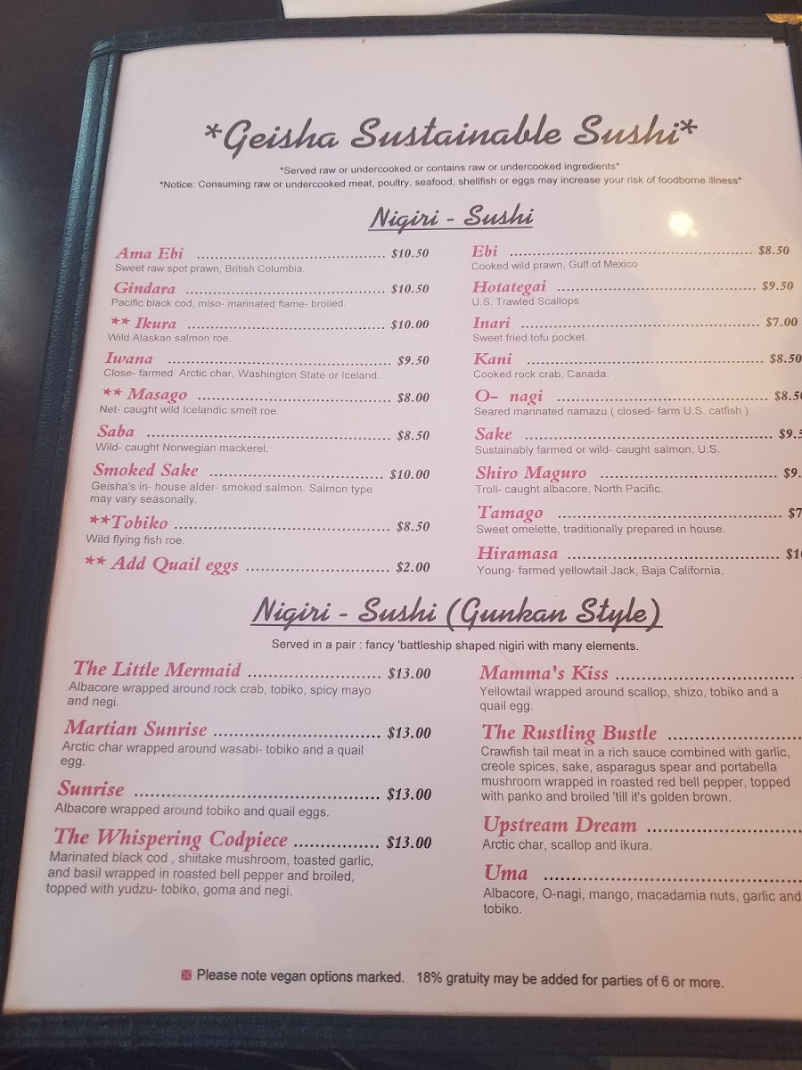 Introducing the Menu at Geisha Japanese Restaurant and Tea House